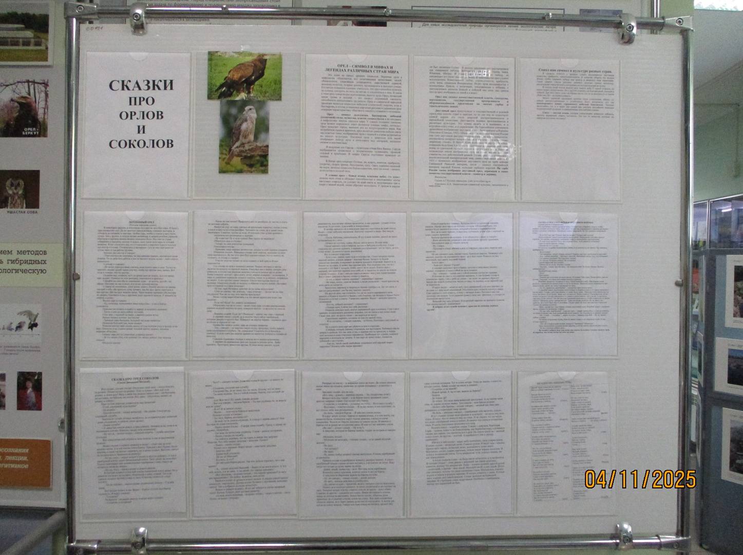 Состоялось мероприятие «Сказки про орлов и соколов». Слушатели познакомились с соколами в демонстрационных вольерах на территории усадьбы заповедника, понаблюдали за ними, узнали, какую роль хищники играют в природе и в жизни человека. Затем все вместе в здании Музея природы разгадывали загадки про орлов и соколов. Послушали несколько сказок, в которых действующими лицами были различные орлы и сокола, сделали поучительные выводы из сказок. Слушатели остались очень довольны и задавали много вопросов о птицах.
