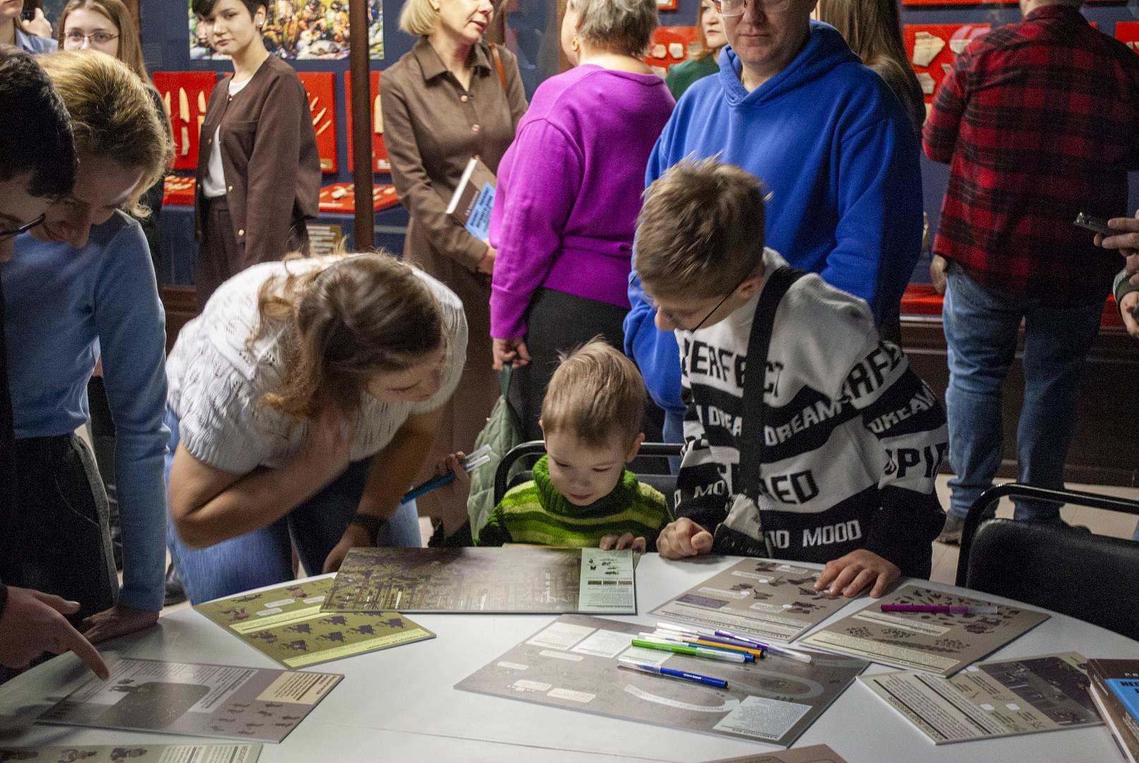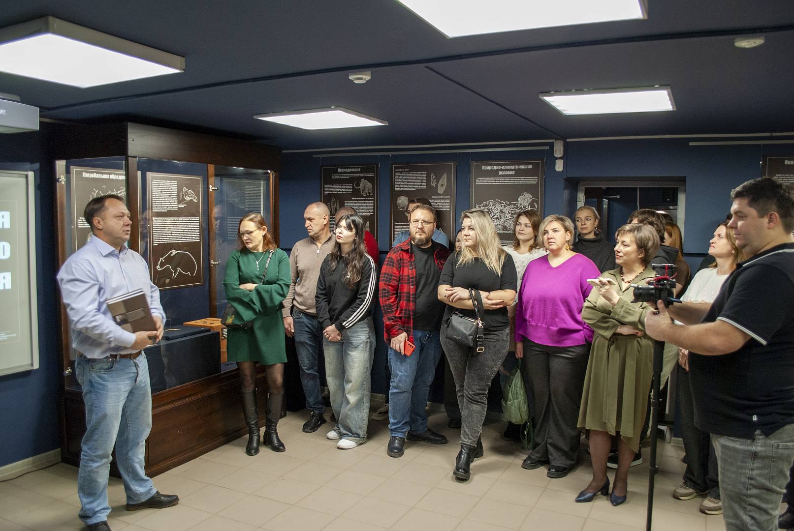 Открытие завершилось увлекательной экскурсией, которую лично провёл Роман Викторович Смольянинов для первых посетителей, подробно рассказав об истории находок, методах исследований и значении каждого экспоната.