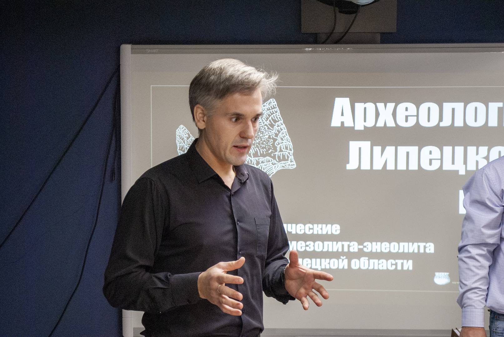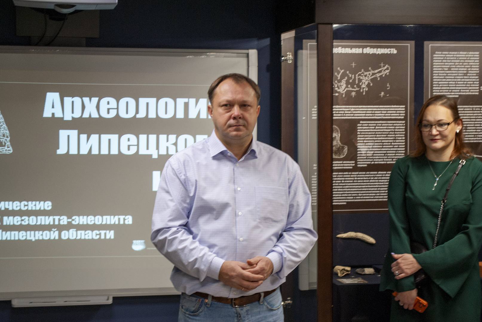 С приветственным словом выступил Александр Сергеевич Гепалов, директор Липецкого областного краеведческого музея. Он выразил благодарность всем участникам проекта, подчеркнув, что эпохи неолита и энеолита – это важнейший период истории – время зарождения и становления цивилизации. Александр Сергеевич, будучи ещё и руководителем археологического направления в музее и куратором выставки, подробно рассказал о принципе построения экспозиции: она логично выстроена от мезолита к неолиту, демонстрируя эволюцию от простейших орудий (небольших трапециевидных пластин) до сложных изделий из камня и кости. Центральное место, по его словам, отведено керамике как важнейшему материалу для воссоздания древнего прошлого. Особое внимание уделено духовной жизни человека, где представлены настоящие жемчужины коллекции – зооморфное изображение лебедя и первый музыкальный инструмент каменного века, найденный в нашем крае. А.С. Гепалов отметил, что благодаря таким исследователям, как руководитель проекта «Изучаем древних, учимся у древних, спасаем древних», председатель Липецкой региональной научной общественной организации «Археологические исследования» Роман Викторович Смольянинов и его команда, мы можем изучать прошлое нашего края, сопоставляя его с современными научными открытиями. Он также подчеркнул, что эта выставка является фундаментом для дальнейшего развития разделов археологической экспозиции в музее и, возможно, будущих передвижных выставок, благодаря интересу к археологии со стороны как участников раскопок, так и жителей региона.