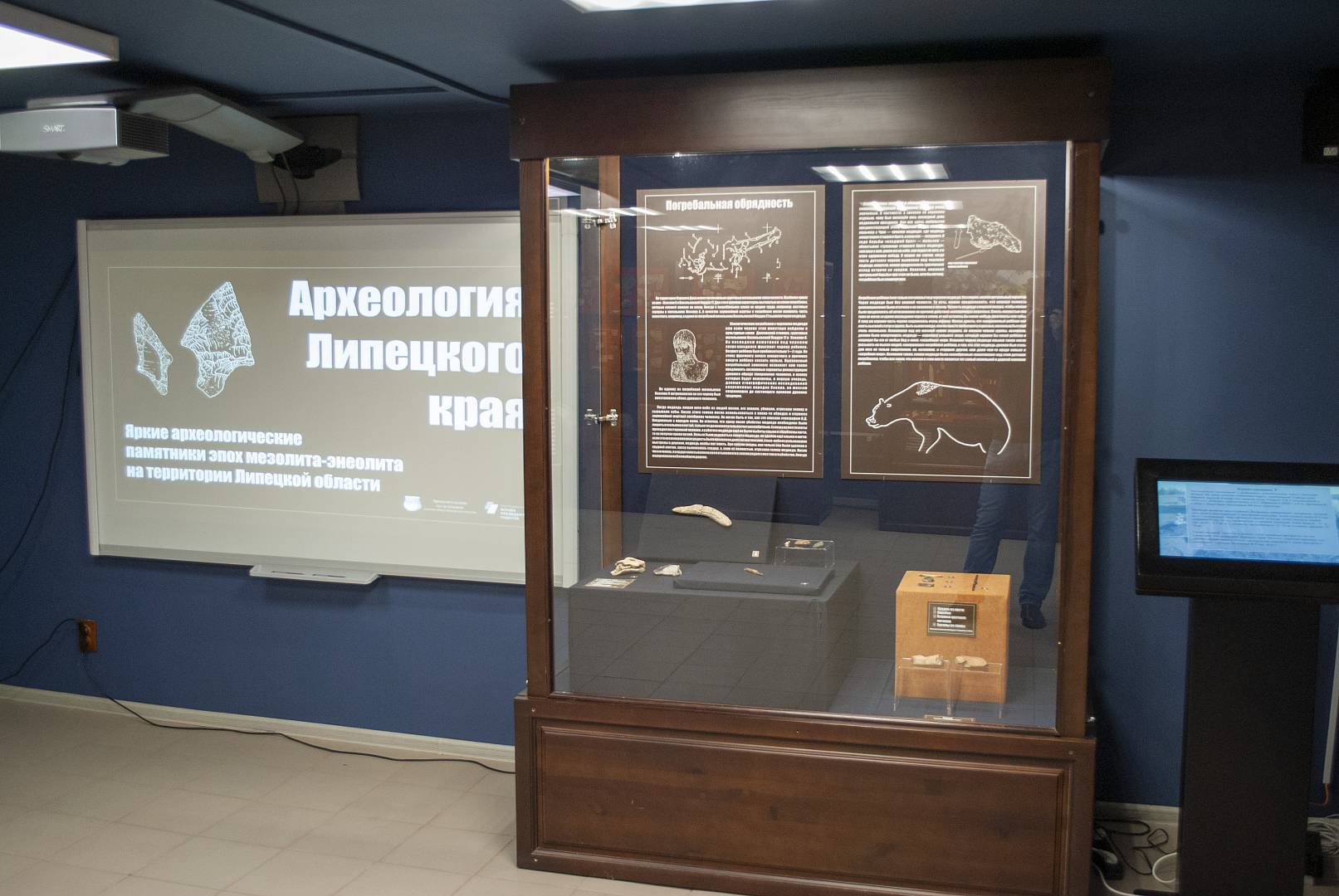 Роман Смольянинов обратил внимание гостей, что изюминкой выставки и отличительной особенностью экспозиции является то, что впервые так ярко в рамках археологической выставки в нашем регионе представленная "кость". Костные орудия чрезвычайно редки из-за плохой сохранности в песчаных грунтах, но Липецкой области повезло с уникальными находками. Так, например, ярким примером стала скульптура лебедя, датируемая концом VI – началом V тысячелетия до нашей эры. Эта находка, найденная в двух частях, была передана в Государственный Эрмитаж в Санкт-Петербурге, где реставраторы успешно восстановили её. Таким образом, в организации этой выставки приняли участие не только наш - Липецкий областной краеведческий музей, но и специалисты ведущего музея Северной столицы, что стало прекрасным примером сотрудничества.